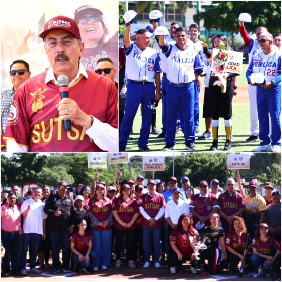 CIUDAD OBREGÓN, SONORA 18 DE OCTUBRE DE 2025,. Con el firme propósito de fortalecer la convivencia, el trabajo en equipo y la salud integral de las y los trabajadores del Ayuntamiento, el Presidente Municipal de Cajeme, Javier Lamarque, encabezó la inauguración de la Liga Interna de Béisbol y del Torneo de Slow Pitch Femenil del SUTSAC, misma que tuvo como sede el Estadio de Béisbol de la Comisaría de Providencia.