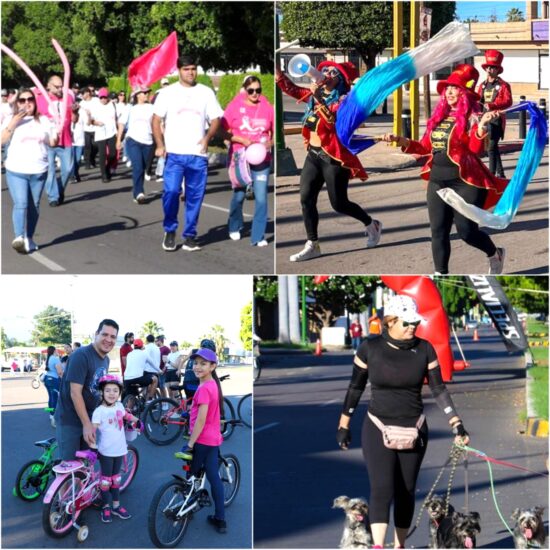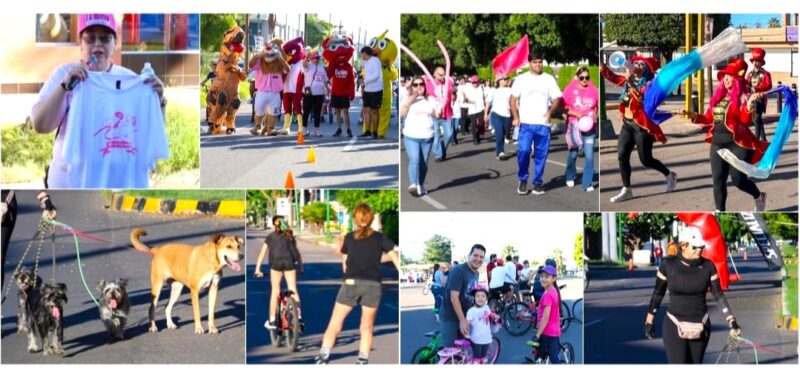 Desde temprana hora, decenas de familias se dieron cita en el punto de inicio ubicado en Miguel Alemán y Náinari para participar en las actividades recreativas, caminatas, paseos en bicicleta y patines, además de disfrutar en esta ocasión de carreras de botargas, juegos y regalos.