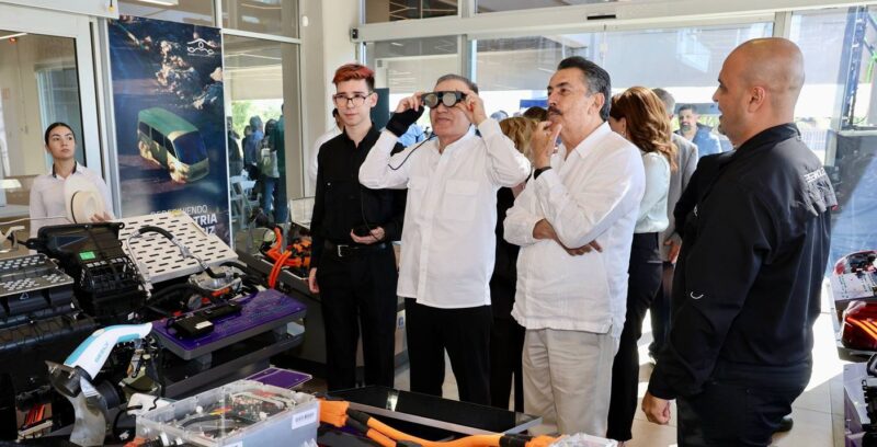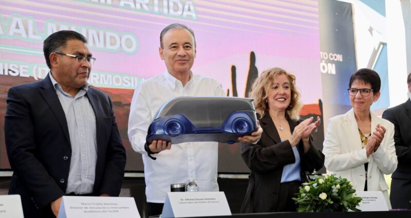 Durazo Montaño reafirmó su compromiso con la formación de talento sonorense, al destacar la implementación del modelo de Educación Dual que permitirá a estudiantes del Instituto Tecnológico de Hermosillo (ITH) participar en el proceso de manufactura del vehículo, fortaleciendo sus capacidades en sectores estratégicos como la electromovilidad, los semiconductores y las energías renovables.