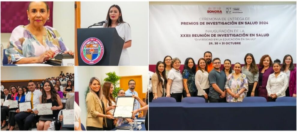 Hermosillo, Sonora; 29 de octubre de 2025.– Con el fin de fomentar la formación, la capacitación y la interacción entre investigadores y estudiantes de distintas instituciones de educación superior en temas de salud, el Gobierno de Sonora, a través de la Secretaría de Salud, llevó a cabo la Ceremonia de Entrega de Premios de Investigación en Salud 2024, en el marco de la XXXII Reunión de Investigación en Salud.