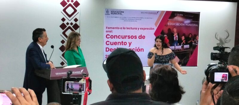 Señaló que el concurso de declamación se realizará el jueves 13 de noviembre, a las 10:00 horas, en sede por definir y las inscripciones quedan abiertas desde hoy con cierre al 7 de noviembre a las 15 horas, por lo que se invita a los directivos de los planteles educativos interesados a registrar su participación en las oficinas de la Dirección de Educación Municipal, con domicilio en calle Sonora 202 norte, entre Allende y avenida Náinari, colonia Centro.