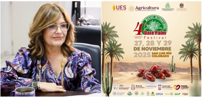 San Luis Río Colorado, Sonora; 31 de octubre de 2025.- Con el impulso del Gobierno de Sonora, a través de la Universidad Estatal de Sonora (UES), se anunció la realización del 4to. Festival Internacional de la Palma Datilera en México, que se llevará a cabo los días 27, 28 y 29 de noviembre en San Luis Río Colorado.
