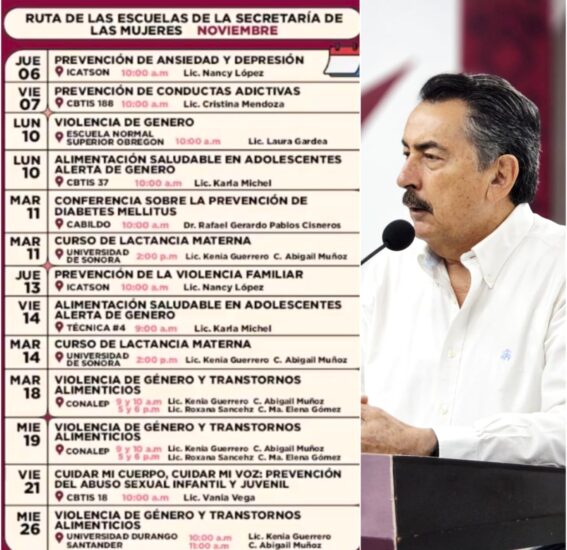 Durante el mes de noviembre dicha dependencia llevará a cabo diversas pláticas educativas visitando escuelas como CBTIS 188, Escuela Normal Superior, CBTIS 37, Universidad de Sonora, Técnica 4, CONALEP, Universidad Durango Santander, entre otros.
