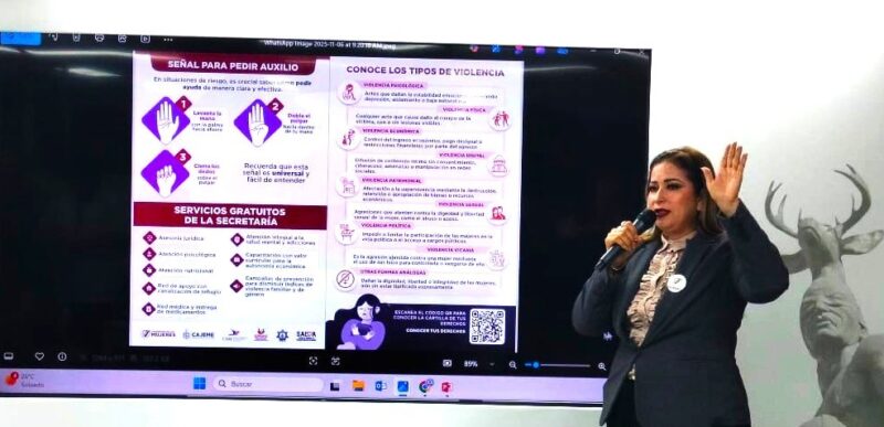 Por su parte, Marina Herrera, titular de la Secretaría de las Mujeres en Cajeme, informó que se mantiene un trabajo permanente en escuelas, empresas y comunidades para difundir información preventiva y de atención, acercando a las mujeres los mecanismos de ayuda y denuncia.
