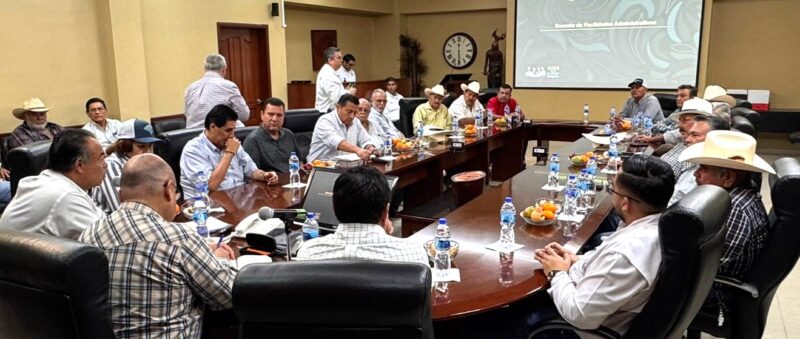 CIUDAD OBREGÓN SONORA 6 DE NOVIEMBRE DE 2025.-Integrantes de Módulos y el Consejo de Administración del Distrito De Riego del Río Yaqui, asi como representantes de Organismos Agrícolas de los diferentes tipos de tenencia del Sur de Sonora, se reunieron con autoridades de CONAGUA, en las instalaciones del organismo del agua.