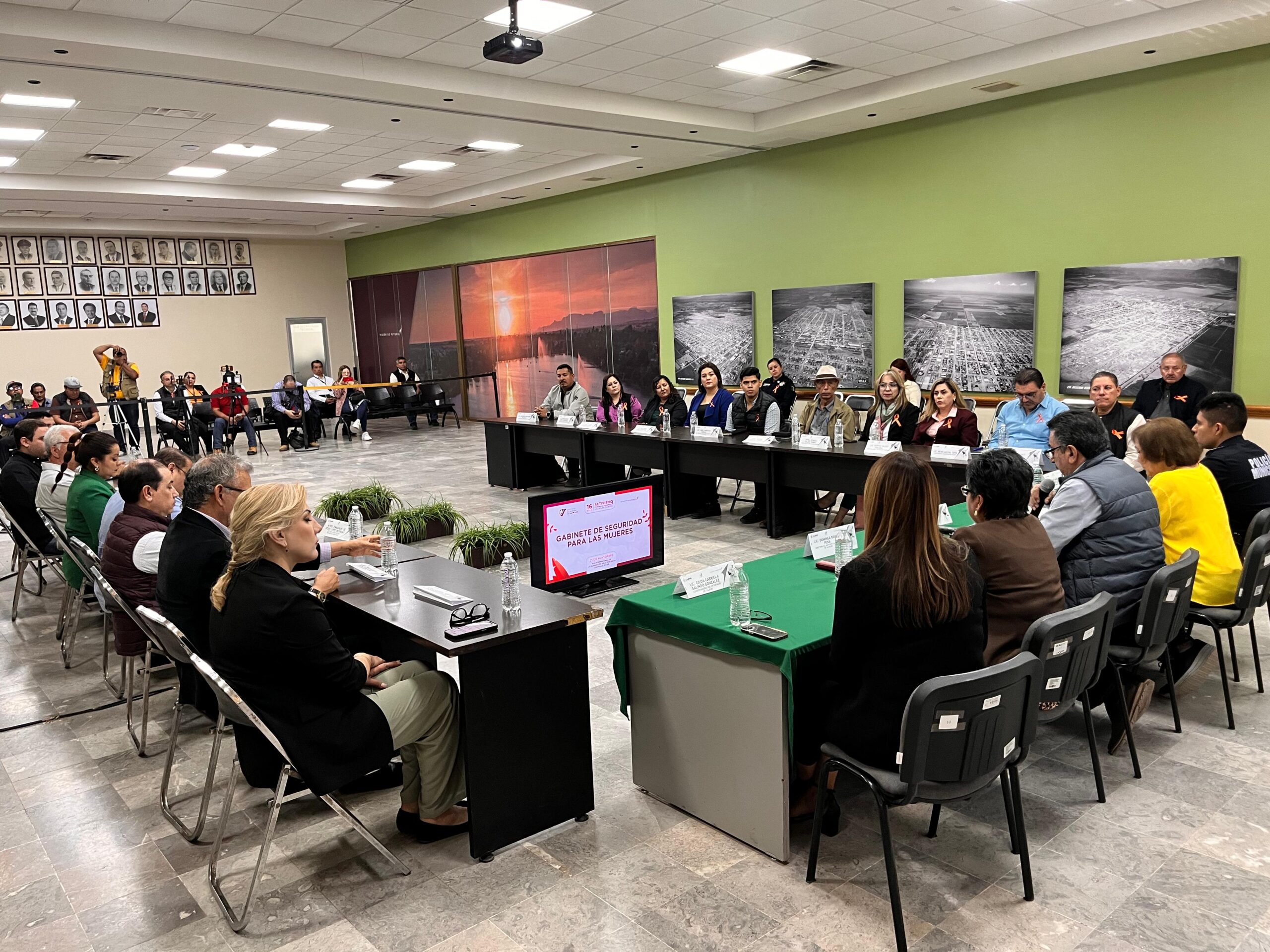 El Gabinete de Seguridad para las Mujeres del Municipio de cajeme lo encabeza el Presidente Municipal Javier Lamarque; la Presidenta del Voluntariado DIF Cajeme, Martha Patricia Patiño Fierro; Lucy Haydee Navarro Gallegos, Secretaria del Ayuntamiento; el Contralmirante Claudio Cruz Hernández, Secretario de la SSPM; Emmanuel de Jesús López Medrano, Jefe de Despacho de Presidencia Municipal; Octavio Cesar Quintero Valenzuela, Director de la Academia de Policía Municipal; Jorge Alberto Ponce Salazar, Oficial Mayor; Dominga Bravo Peña, Directora del Instituto Cajemense de la Mujer; Reyna Karina Elías Gaxiola, representante del área de Coordinación Servicios Asistenciales DIF Cajeme; Claudia Santacruz Avilés, Directora General de DIF Cajeme y la Regidora María Leyva Armendáriz, Presidenta de la Comisión de Desarrollo de la Mujer y Asistencia Social.