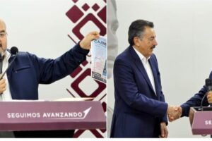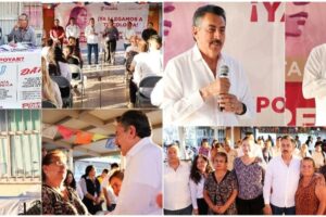 Tras lo anterior el presidente municipal fue invitado por jugadoras de voleibol que se encontraban en el lugar a dar el primer saque de la liga que están retomando las vecinas de la colonia Primero de Mayo.