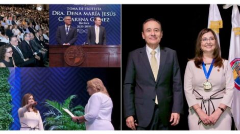 El gobernador Alfonso Durazo encabezó la toma de protesta de la nueva rectora de la Universidad de Sonora, Dena María Jesús Camarena Gómez, en un...