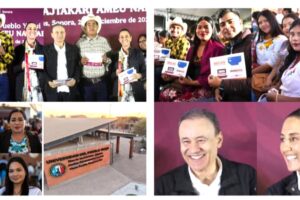 El jefe del Ejecutivo estatal y la jefa del Ejecutivo federal entregaron 325 becas a alumnos y alumnas de la Universidad del Pueblo Yaqui para continuar con...