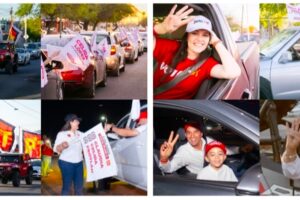 HERMOSILLO, SONORA 28 DE MAYO DE 2024.- Con un espectacular caravana, los candidatos al Senado por el Partido del Trabajo, Celida López y Froylán Gámez...